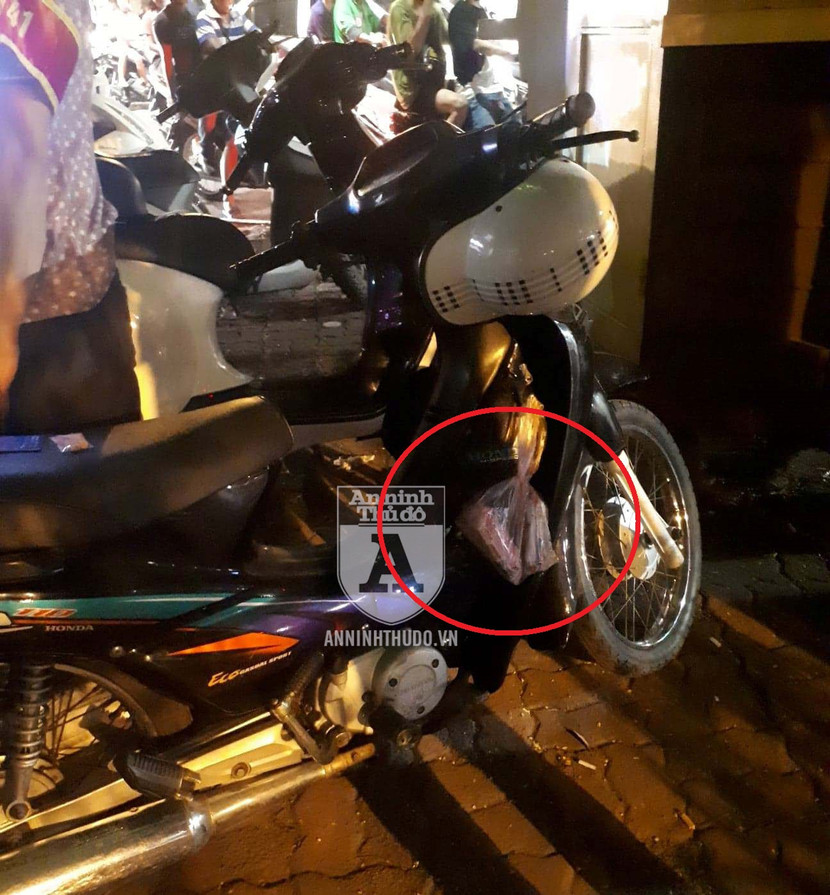 Hai gói mì tôm "bất thường" được treo trên xe máy của đối tượng