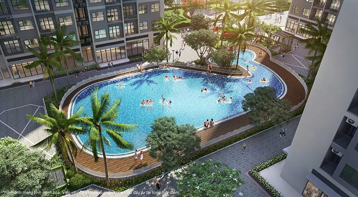 Bể bơi ngoài trời ngay dưới chân 2 tòa Sapphire S1.08 và S1.09