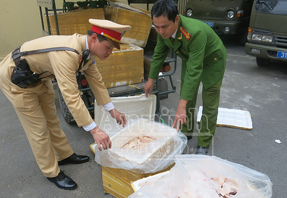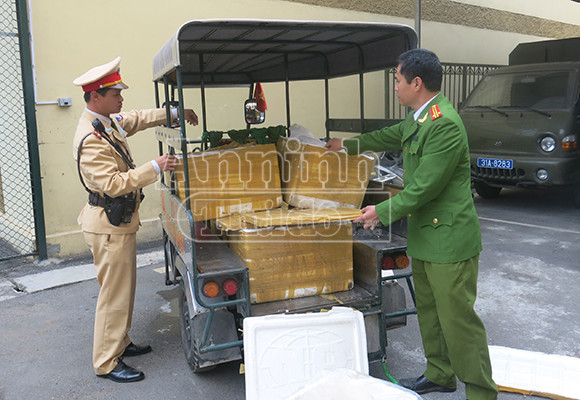 Khoảng 8h sáng 8/1, Đội CS phòng, chống tội phạm về môi trường – CAQ Hoàng Mai phối hợp với Đội CSGT số 14, trong quá trình làm nhiệm vụ rà soát tại ngã ba Trương Định – Giải Phóng, phát hiện một chiếc xe ba bánh tự chế đang lưu thông theo hướng bến xe Phía Nam – Văn Điển chở 6 thùng xốp được dán kín có biểu hiện nghi vấn, nên đã kiểm tra hành chính. Kết quả, phát hiện bên trong là nội tạng và sản phẩm lợn sống đang trong quá trình phân hủy, bốc mùi khó chịu. Ước tính trọng lượng số hàng trên khoảng 300kg.