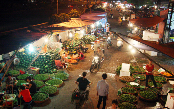 3h sáng (13-6), khi trái bóng Brazuca chính thức trên sân cỏ Brazil khuấy động bầu khí cuồng nhiệt của World Cup 2014, cũng là lúc chợ Long Biên - chợ đầu mối rau củ quả lớn nhất Hà Nội, vào guồng.