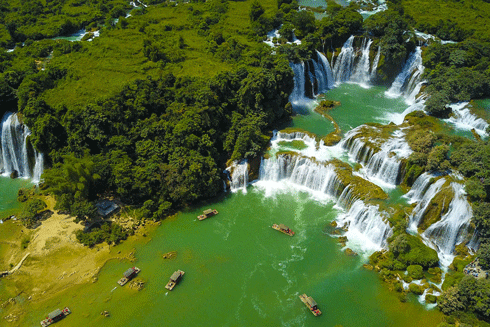 Thác Bản Giốc nằm gần cuối của dòng Quây Sơn là thác nước lớn và đẹp nhất Việt Nam
