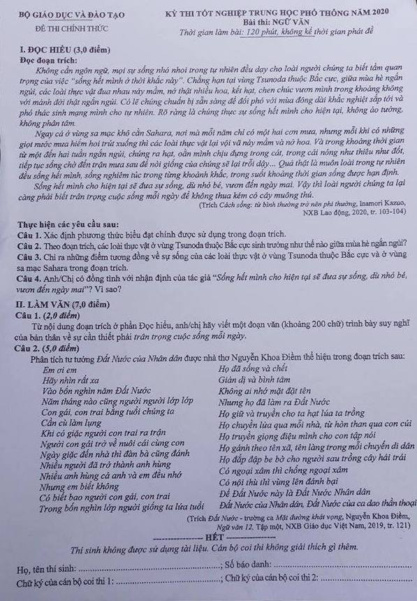 (Đề thi môn Ngữ Văn - Kỳ thi THPT Quốc gia 2020 - nằm ở phía dưới)