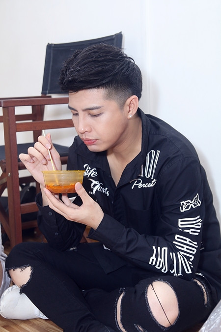 Tuy nhiên, vì lịch trình làm việc khá kín và căng thẳng trong thời điểm này khi vừa đi diễn, vừa lo cho các thí sinh nhí tại "The Voice Kids", vừa tập cho "Asia Song Festival 2016"... nên nhiều hôm Noo Phước Thịnh phải tranh thủ ăn lót dạ một cách vội vàng trong phòng tập nhảy.
