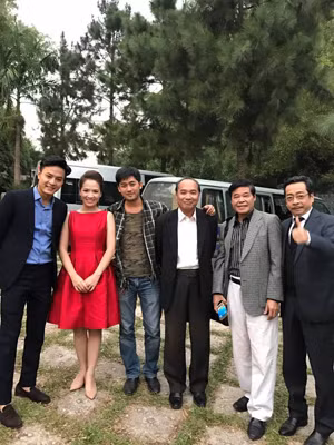 NSND Hoàng Dũng chụp ảnh cùng các nghệ sỹ đoàn làm phim "Người phán xử".