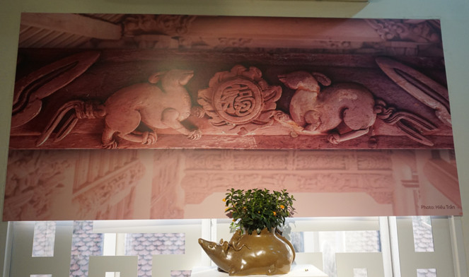 Hình ảnh cặp chuột cầu chữ “Phúc” tại đình làng Trùng Hạ, Ninh Bình