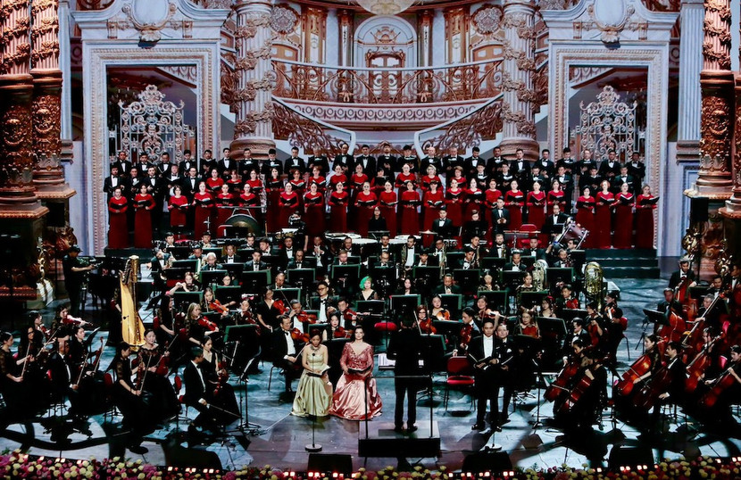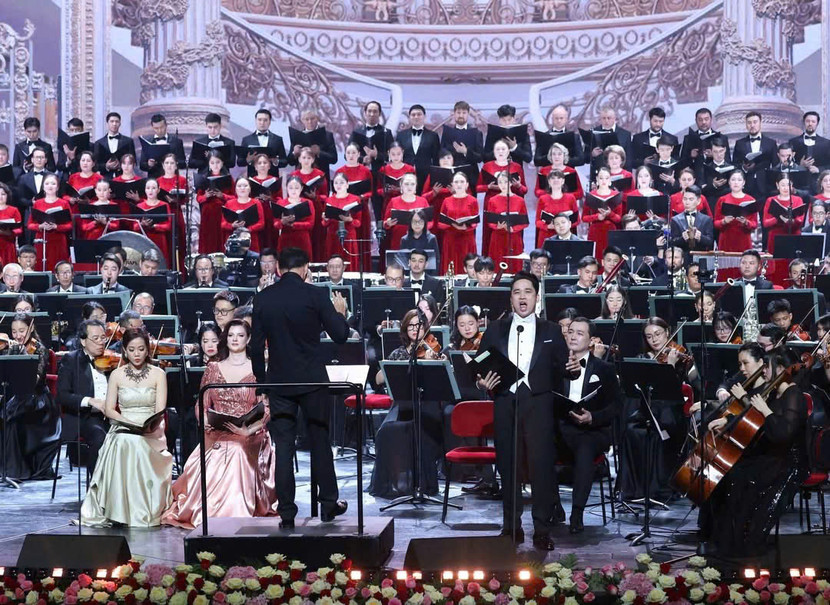 Trên sân khấu, “siêu sao quốc tế” Dimash Qudaibergen biểu diễn 2 tiết mục kết là “Người lạ” và “Adai”. Trung tâm của chương trình hòa nhạc là phần thể hiện Giao hưởng số 9 của Beethoven – tác phẩm được gọi là “Tuyệt phẩm đỉnh cao của nhân loại”. Tham gia biểu diễn là 200 nghệ sĩ, trong đó có 4 giọng hát solist là NSƯT Phạm Khánh Ngọc, NSƯT Oksana Davydenko, Ninh Đức Hoàng Long và NSƯT Talgat Musabaev…