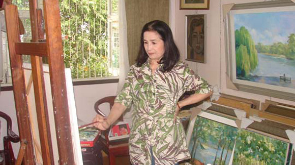 Lúc đầu bà học vẽ cho vui, sau thì miệt mài lao vào vẽ để khỏa lấp đi khoảng trống vô bờ mà người chồng quá cố để lại, và rồi thì bà mê vẽ đến “mụ” cả người, thậm chí có lúc nằm ngủ bà cũng mơ thấy mình… đang vẽ. Tranh bà vẽ nhiều, chủ yếu là tranh tĩnh vật và phong cảnh thiên nhiên, treo dựng kín nhà. Nhiều người gợi ý mang tranh của bà ra trưng bày ở ngoài phòng tranh nhưng bà thì chỉ muốn để ở nhà cho bạn bè người quen đến thưởng lãm. Bà bảo nhiều lúc cũng thấy vui vì có người thích và ngỏ ý mua về. Trong số ấy có bức tranh bà vẽ về xứ Quảng, nơi có dòng sông Trà mà cha mẹ đã lấy để đặt tên cho mình với nỗi niềm hoài hương khôn xiết; lúc lại là cảnh cô gái ngồi một mình dưới tán phượng đỏ bên hồ Gươm gợi lại ký ức những tháng ngày sống ở Hà Nội…