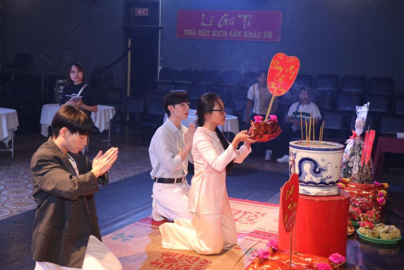 May mắn ở thời điểm tháng 9/2022, tình hình dịch bệnh tiếp tục được kiểm soát tốt. Nhà hát Kịch Sân khấu nhỏ có thể tổ chức lễ dâng hương chỉn chu; mời tất cả tác giả, đạo diễn, nhân viên kỹ thuật và nghệ sỹ; ký giả đến cùng hướng về Tam vị Thánh tổ.