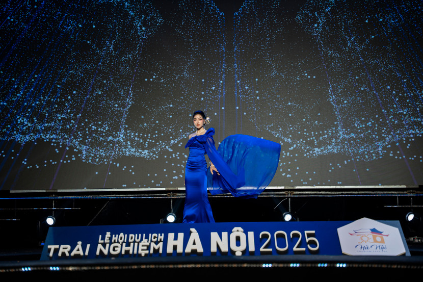 Tối qua 30-5, "Lễ hội du lịch Hà Nội năm 2025" với chủ đề "Trải nghiệm Hà Nội 2025" do UBND TP Hà Nội chỉ đạo, Sở Du lịch Hà Nội tổ chức, đã khai mạc tại Khu di sản Hoàng thành Thăng Long. Trong khuôn khổ lễ khai mạc sự kiện đặc sắc và ý nghĩa này, nhà thiết kế Châu Loan đã giới thiệu đến đông đảo khán giả và du khách gần xa bộ sưu tập "Đại dương xanh".