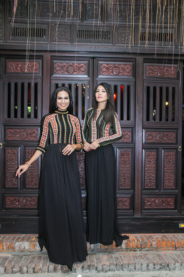 H'Ăng Niê và diễn viên điện ảnh Đinh Y Nhung trong thiết kế thổ cẩm của NTK Việt Hùng