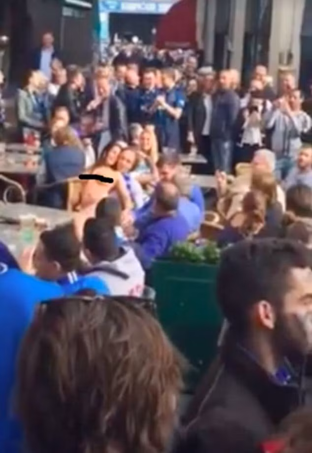 Hình ảnh đăng tải trên các trang mạng xã hội ở Bỉ cho thấy fan nữ được xác định tên là Annuska H sau đó khỏa thân hoàn toàn và nhảy múa giữa đám đông. Tất nhiên, không chỉ vui với chiến thắng của Club Brugge, các nam CĐV của CLB này còn được dịp rửa mắt… miễn phí.