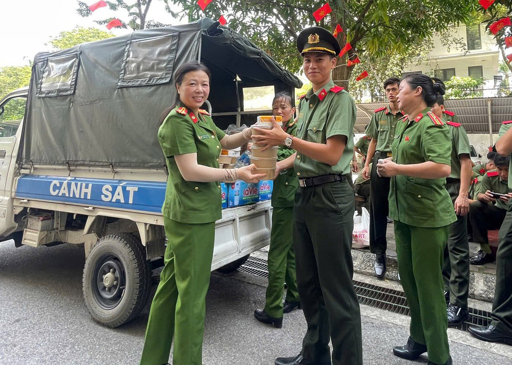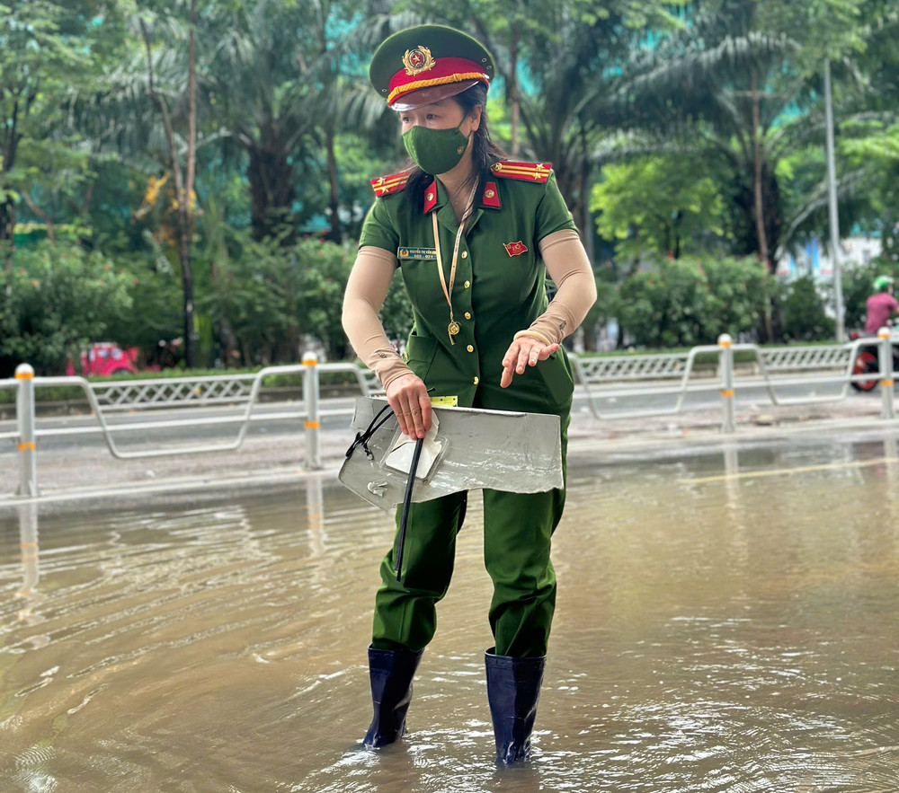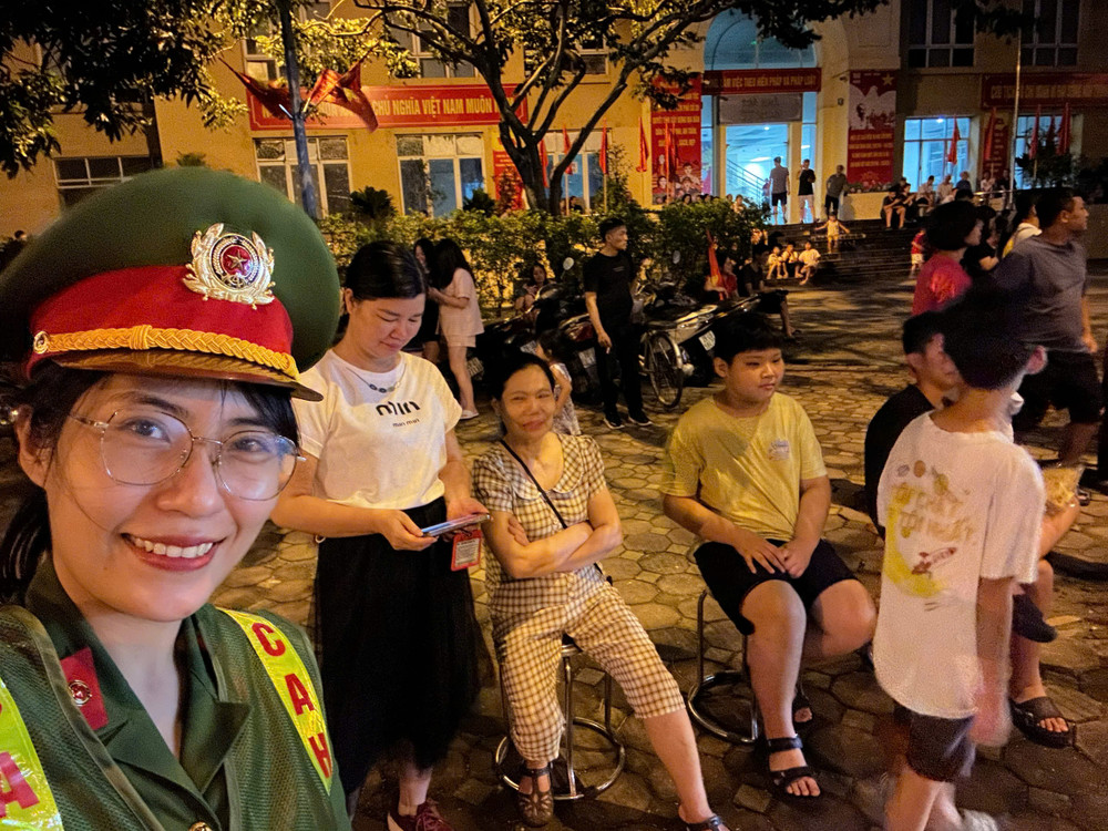 Nữ chiến sỹ Công an phường Phú Thượng tham gia bảo đảm ANTT sự kiện A80
