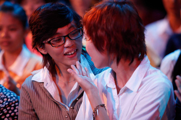 Hạnh phúc trong vòng tay bạn gái và em gái