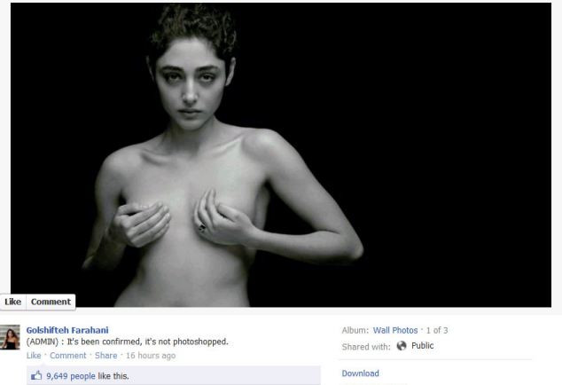 Sự tức giận của chính phủ Iran đối với tấm hình trên không chỉ bởi nữ diễn này phô bày thân thể của mình trong đó mà còn bởi vì cô đã cho thấy quyết định chụp chúng để chống đối lại những đạo luật Hồi giáo gò bó. Đó cũng chính là lý do mà Farahani rời Iran sang định cư tại Paris từ năm trước.