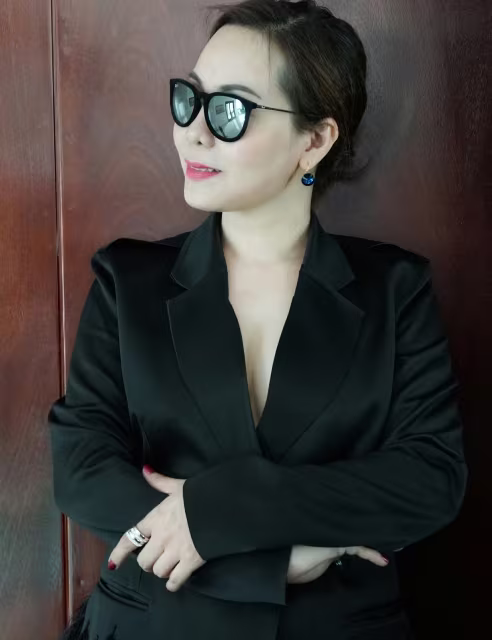 Trong chiếc áo vest màu đen gợi cảm, mỹ nhân U40 đã mạnh dạn khoe vẻ đẹp tròn trịa và đầy đặn của mình.