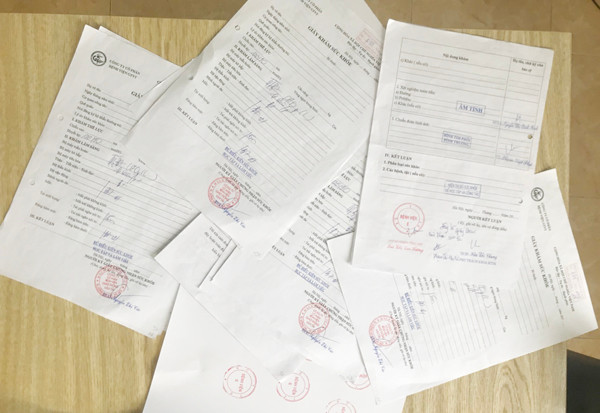 Ngày 12-6, Cơ quan CSĐT CAQ Bắc Từ Liêm tiến hành trưng cầu giám định mẫu dấu, mẫu chữ ký, chữ viết, chữ số trên các tài liệu thu giữ. Kết luận giám định của Phòng Kỹ thuật hình sự CATP Hà Nội xác định dấu tròn “Công ty cổ phần bệnh viện giao thông vận tải trên mẫu cần giám định là giả, hình dấu tròn “BỆNH VIỆN E” trên các mẫu cần giám định với hình dấu tròn “BỆNH VIỆN E” trên mẫu so sánh không phải do cùng một con dấu đóng ra.