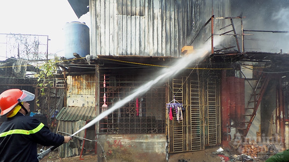 Hiện trường vụ cháy rất khó khăn, xe cứu hỏa không thể tiếp cận
