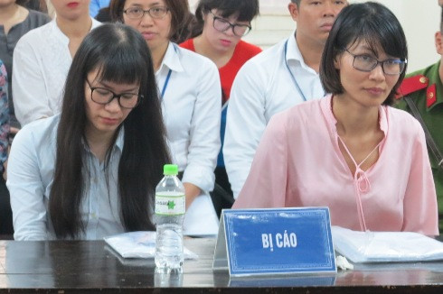 Cựu nữ tổng giám đốc Nguyễn Hồng Anh (bên trái) và đồng phạm tại phiên tòa.