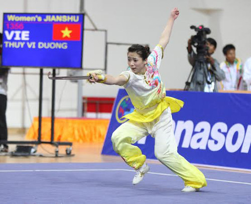 8h sáng nay (20-8), môn wushu SEA Games 29 khởi tranh với phần thi kiếm thi thuật nữ. Đại diện Việt Nam tham dự nội dung này là Dương Thúy Vi - nhà vô địch đại hội 2 kỳ liên tiếp.