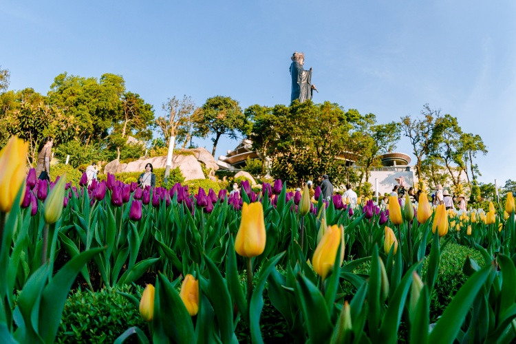 Trên đỉnh núi, người dân nô nức chiêm bái Tượng Phật Bà Tây Bổ Đà Sơn cao nhất châu Á, tôn tượng Bồ Tát Di Lặc lớn hàng đầu thế giới và khu triển lãm rộng lớn – nơi du khách sẽ khám phá thế giới Phật giáo và kiếm tìm sự an yên, hỷ lạc trong những ngày đầu năm mới.