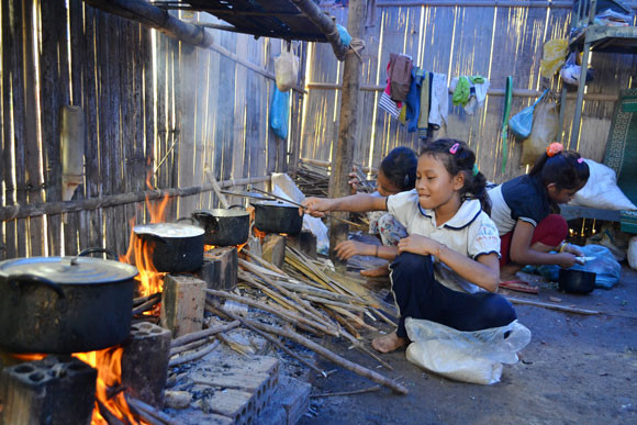 Chiều thứ 7 hàng tuần, sau khi kết thúc một tuần học, các em học sinh sống trong lều tạm lại khăn gói băng rừng về nhà thăm gia đình và lấy thêm lương thực cho tuần học mới. Đường về thôn Nước Biếc, thôn Tre… đã xa xôi lại lắm đoạn đèo dốc gập ghềnh. Mùa mưa, đường núi trở nên nhão nhoét, trơn trợt còn nước suối thì dâng cao nhưng các em vẫn phải đều đặn về nhà “cõng” gạo lên lớp mỗi tuần. “Tụi em không có áo mưa để mặc đâu, nên phải dầm mưa đi bộ hơn 15 km mới về được tới nhà. Nhưng nếu không về thì tuần sau nhịn đói vì không có gạo ăn”, em Hồ Thị Bích thật thà bộc bạch.