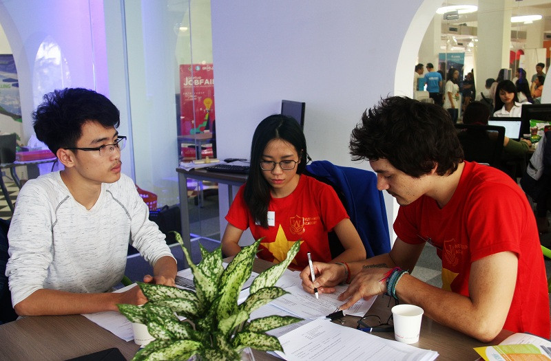 Sinh viên trao đổi thông tin với những doanh nghiệp khởi nghiệp sáng tạo