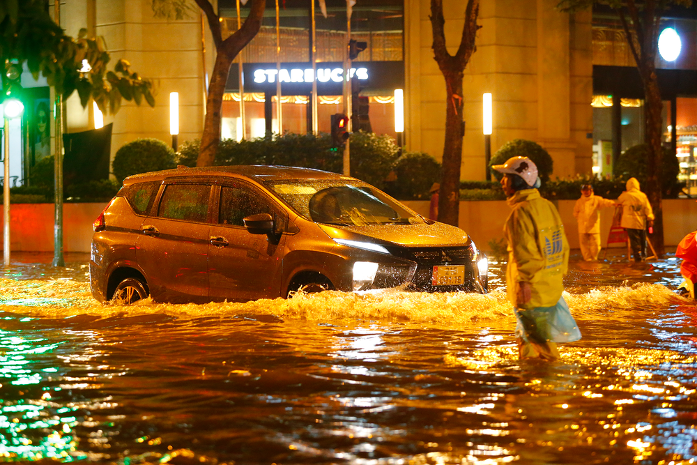 Người điều khiển ô tô mua xôi, bánh mì chống đói do đường ngập sau mưa lớn