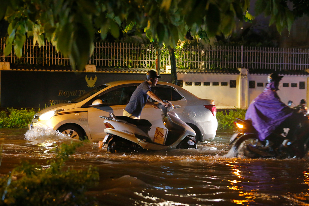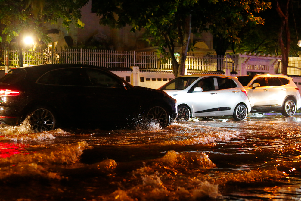 Nút giao Lý Thường Kiệt - Phan Bội Châu biến thành ‘sông’ sau trận mưa lớn