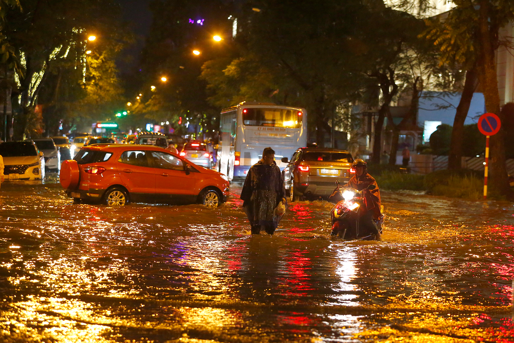 Hà Nội: Nhiều tuyến phố bị ngập do mưa lớn