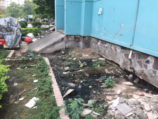 Xung quanh nhà N6 nước thải hôi thối bẩn thỉu ngập khắp nơi