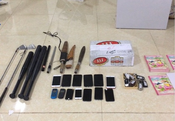 Tại thời điểm bắt giữ, lực lượng Công an thu tang vật gồm hơn 1 tỷ đồng, 16 điện thoại di động, 12 xe ô tô, 9 xe máy và nhiều tài liệu liên quan đến việc vay nợ, đánh bạc và cầm cố tài sản.