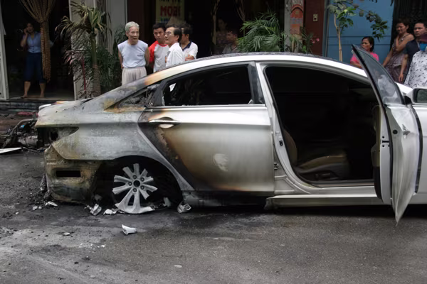 Sự việc xảy ra vào khoảng 11 giờ 50 ngày 7-5-2015, khi chiếc ô tô hiệu Hyundai đang lưu thông đoạn gần chung cư Packexem đường An Dương Vương, Phú Thượng, Tây Hồ, Hà Nội thì bất ngờ bốc cháy ở phần đuôi xe.