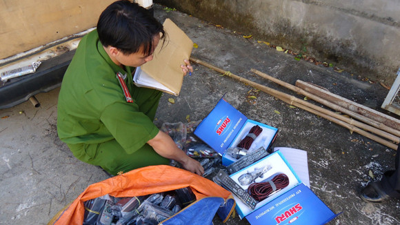 Công an Nghĩa Hành kiểm tra các linh kiện điện tử