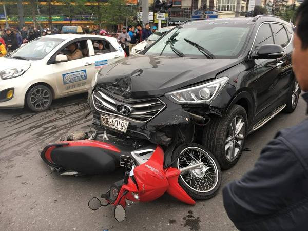 Chưa dừng lại, chiếc xe này còn đâm vào chiếc xe máy đang đi trên đường. Hậu quả khiến 2 người ngồi trên xe máy bị thương phải nhập viện.