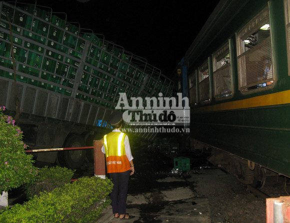 Vụ tai nạn khiến hàng loạt két bia rơi xuống đường ray, vỡ tung tóe