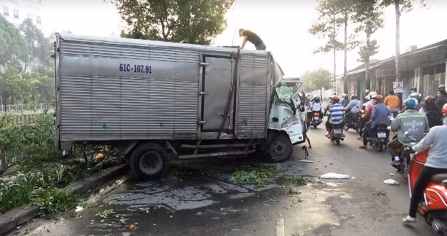 Thông tin ban đầu, khoảng 3h40 rạng sáng 7/12, xe tải mang BKS: 61C - 107.91 do nam tài xế khoảng 30 tuổi điều khiển, chạy trên đường Hoàng Sa hướng từ quận Tân Bình về quận 3. Vừa qua cầu số 5 khoảng 200m thuộc phường 11, quận 3 thì bất ngờ chiếc xe chao đảo rồi lao sang trái, húc ngã 2 cây xanh rồi lật nhào.