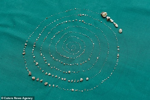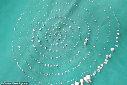 Bác sĩ Pratibha Ramani, người thực hiện ca phẫu thuật cho biết: "Khối sưng nặng khoảng 200gram, chứa hơn 500 chiếc răng đã được loại bỏ khỏi miệng của bệnh nhân. Chúng có nhiều kích thước, từ 0,1mm đến 15mm. Bạn có thể tưởng tượng, trường hợp này chẳng khác gì những viên ngọc trai trong một con hàu. Ngay cả những chiếc nhỏ nhất cũng có chân và lớp men như răng bình thường".
