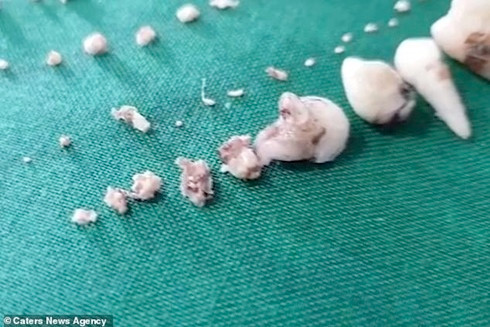 526 chiếc răng đủ kích thước, mọc thành chùm dưới chiếc răng hàm bị sưng