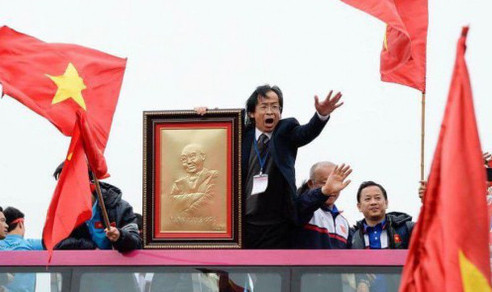 Ông Nguyễn Lân Trung trên xe diễu hành U23 Việt Nam