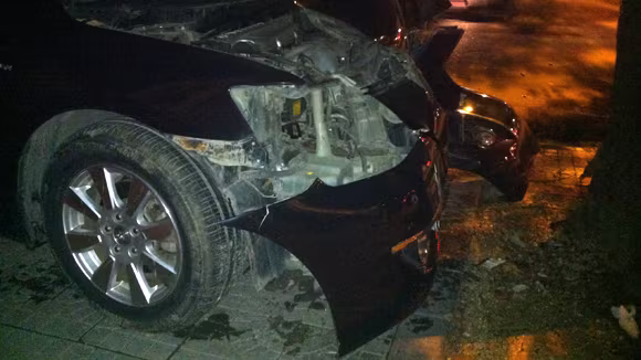 Khoảng 21h 15 phút tối 9-9, chiếc xe Camry mang BKS: 29Z - 0117, do một thanh niên ngoài 30 tuổi đang điều khiển qua ngã tư Kim Mã - Liễu Giai (cạnh khách sạn Daewoo) hướng đi về Văn Cao, bất ngờ mất lái, trèo lên vỉa hè và đâm vào một cây xanh bên đường.