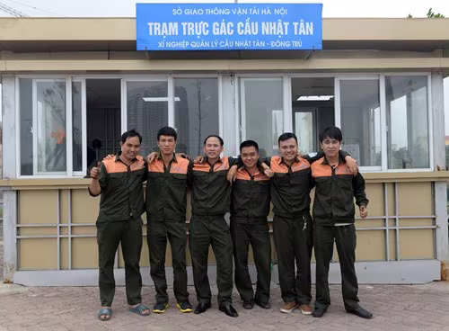 Các nhân viên bảo vệ cầu Nhật Tân - Đông Trù tình nguyện làm trợ giúp giao thông