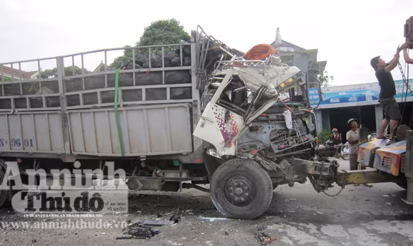 Cú đâm mạnh đã làm tài xế xe tải 37N 9601 tử vong ngay trong cabin. Đầu chiếc xe tải 37N 9601 nát bét, chiếc xe tải kia cũng hư hỏng nặng.