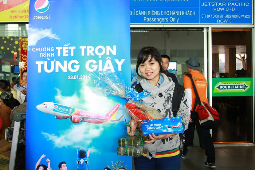 Tham gia “Tết trọn từng giây”, những sinh viên, công nhân nghèo miền Trung sẽ có được một trải nghiệm mới mẻ khi về quê đón Tết trên máy bay Sharklet của VietJetAir với hình ảnh trẻ trung của Pepsi. Ngoài ra, để các sinh viên – công nhân hưởng được hành trình thú vị đầy không khí vui tươi ngày Tết, Pepsi còn tổ chức hoạt động giao lưu giữa MC Quyền Linh, ca sĩ Tiêu Châu Như Quỳnh và các hành khách đặc biệt trên máy bay. Khi hạ cánh xuống sân bay Đà Nẵng, những sinh viên, công nhân sẽ được hỗ trợ hướng dẫn đặt vé xe khách về tới tận quê nhà và nhận được một phần quà và 500.000 đồng hỗ trợ từ nhãn hàng Pepsi, các phần quà của VietjetAir để niềm vui đón Tết của các bạn có thể tròn vẹn và ý nghĩa hơn.
