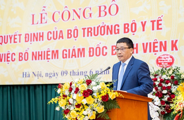 Tại buổi lễ, GS.TS Trần Văn Thuấn, Thứ trưởng Bộ Y tế đã trao quyết định số 2368/QĐ-BYT ngày 05/06/2020 của Bộ trưởng Bộ Y tế về việc bổ nhiệm chức vụ Giám đốc Bệnh viện K cho PGS.TS Lê Văn Quảng đang là Phó Giám đốc Bệnh viện K.
