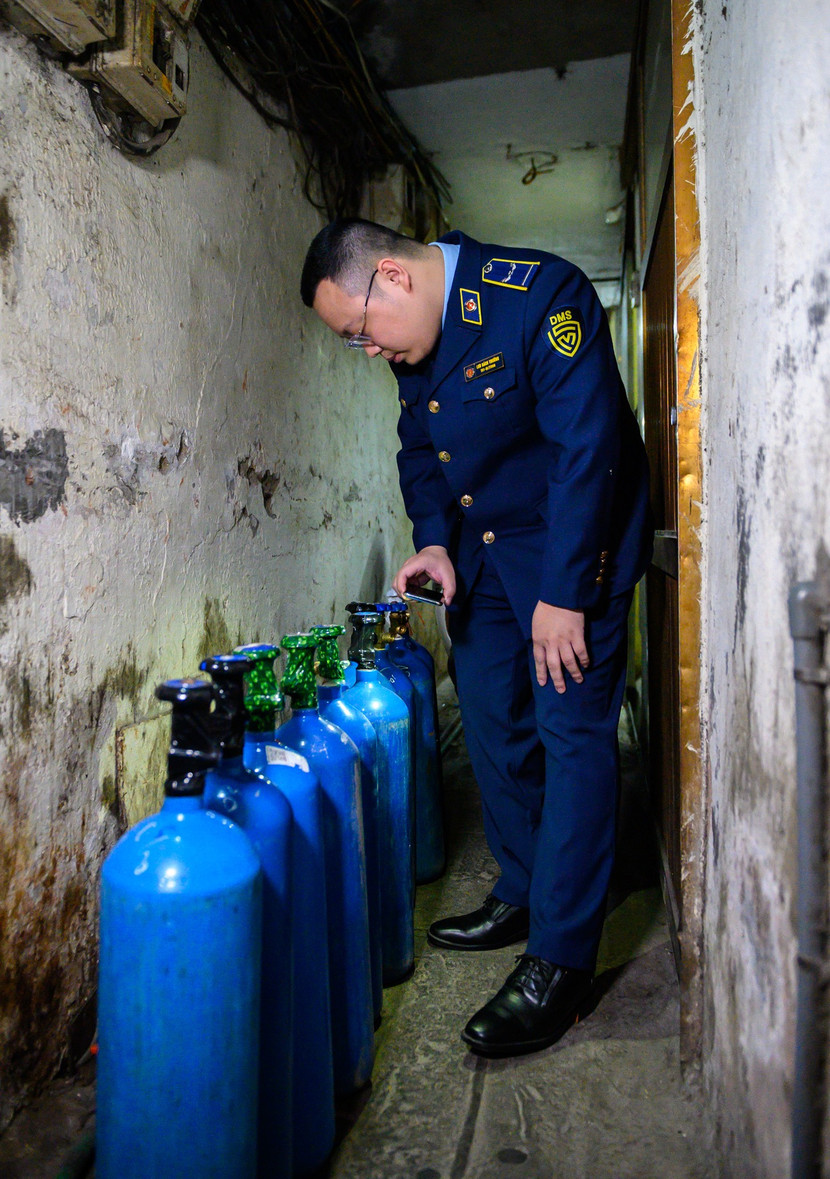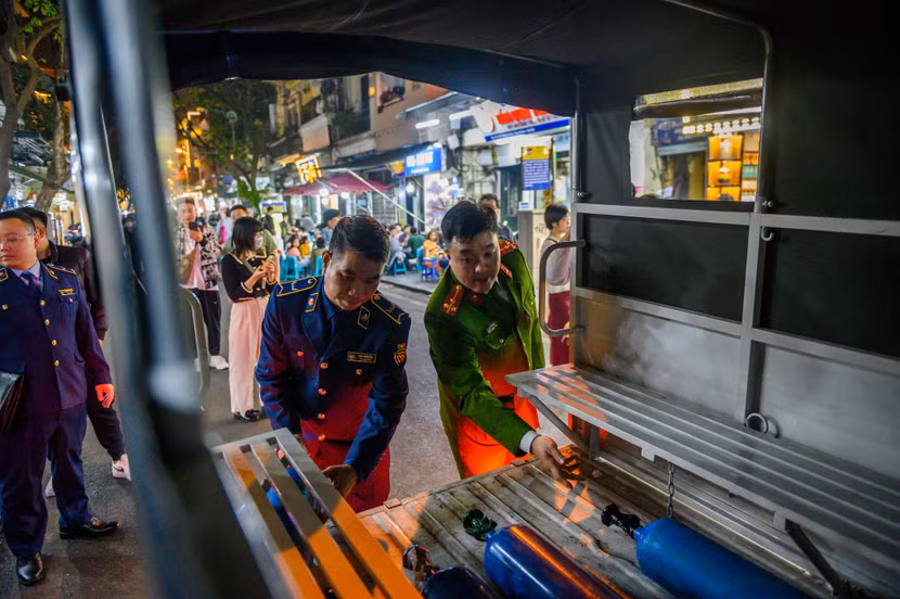 Theo đó, qua công tác nắm tình hình địa bàn, Công an phường Hàng Buồm phát hiện tại kho hàng trong ngõ 96 Hàng Buồm có biểu hiện tập kết “khí cười” để bán lẻ nên báo cáo Ban chỉ huy Công an quận Hoàn Kiếm. Ngay sau đó, Công an quận giao Đội Cảnh sát kinh tế phối hợp với Đội QLTT số 2 - Cục QLTT Hà Nội và Công an phường Hàng Buồm thực hiện kế hoạch kiểm tra, xử lý.