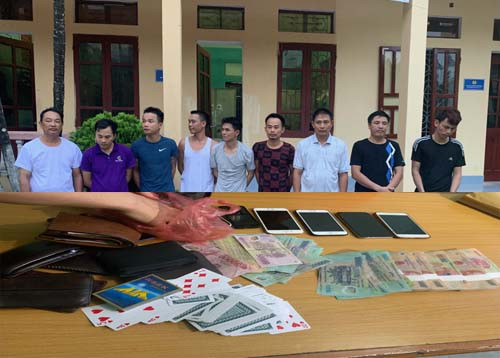 Quá trình kiểm tra, lực lượng Công an bắt quả tang 9 đối tượng đều trú ở địa bàn huyện Thiệu Hóa; thu giữ gần 200 triệu đồng và nhiều tang vật liên quan.