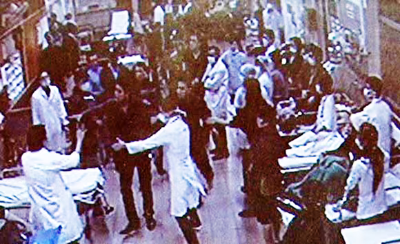 (Một vụ bác sĩ bị hành hung đến ngất xỉu tại Bệnh viện Bạch Mai ngày 2-3-2011 - ảnh cắt từ clip)