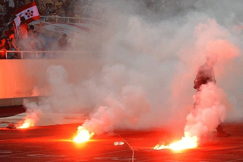 Ở trận Hà Nội - Hải Phòng nói trên còn một hình ảnh xấu xí không kém là cảnh cổ động viên đội khách đua nhau ném chai lọ, vật thể lạ, đốt và ném hàng chục quả pháo sáng xuống sân Mỹ Đình khiến trận đấu phải tạm ngưng hơn 5 phút. Sân vận động quốc gia mù mịt khói lửa, chai lọ tứ tung và mặt nhựa đường piste (dành cho thi đấu môn điền kinh) cháy sém khiến nhiều người ngao ngán với “văn hóa cổ vũ” của khán giả đất Cảng.