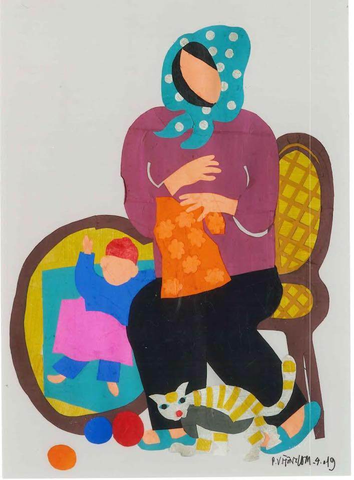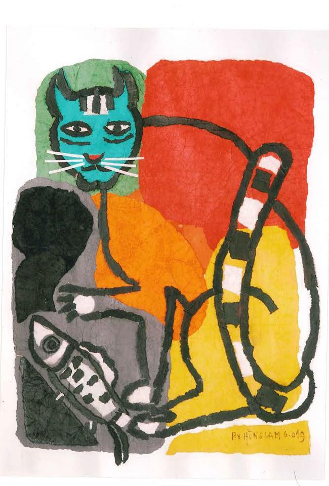 Họa sĩ Phạm Viết Hồng Lam hòa trộn được giữa mầu sắc giấy với những tính toán sắp xếp, xen kẽ thành những tác phẩm thực sự ấn tượng nhưng vẫn mang được hình ảnh và câu chuyện của tâm hồn Việt.