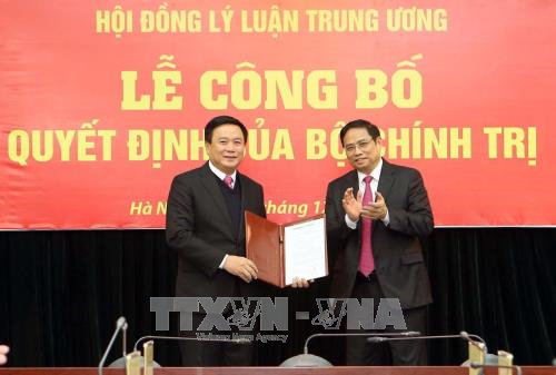 Phát biểu tại lễ công bố, Ủy viên Bộ Chính trị, Bí thư Trung ương Đảng, Trưởng ban Tổ chức Trung ương Phạm Minh Chính nhấn mạnh: Để đảm bảo sự lãnh đạo trực tiếp, toàn diện, thường xuyên, liên tục của Bộ Chính trị, Ban Bí thư và Trung ương Đảng đối với công tác lý luận của Đảng; căn cứ vào quy chế làm việc của Ban Chấp hành Trung ương, Bộ Chính trị, Ban Bí thư, Bộ Chính trị đã thống nhất, quyết định phân công ông Nguyễn Xuân Thắng, Bí thư Trung ương Đảng, Giám đốc Học viện Chính trị Quốc gia Hồ Chí Minh, Phó Chủ tịch Hội đồng Lý luận Trung ương, phụ trách Hội đồng Lý luận Trung ương trong thời gian ông Đinh Thế Huynh, Thường trực Ban Bí thư, Chủ tịch Hội đồng Lý luận Trung ương nghỉ điều trị bệnh.